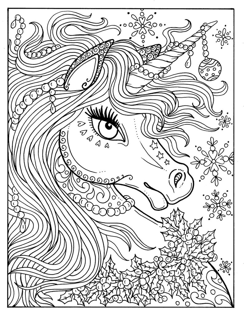 Unicorn Coloring Pages For Adults Unicorn Christmas Coloring Page Adult Color Book Art Fantasy ...