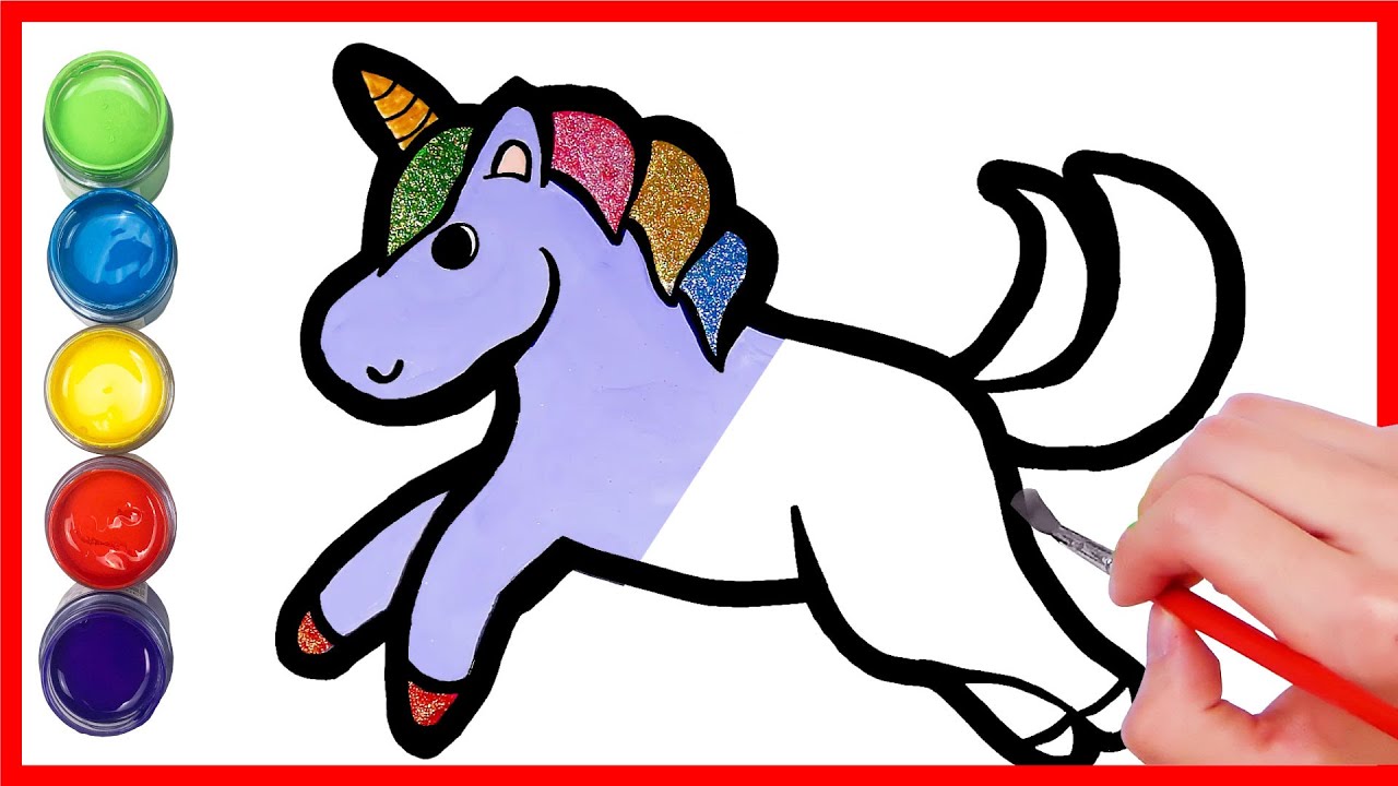 glitter Unicorn coloring pages for kids l Drawing & Learn Colors for kids - YouTube